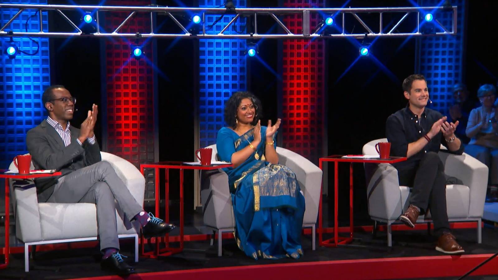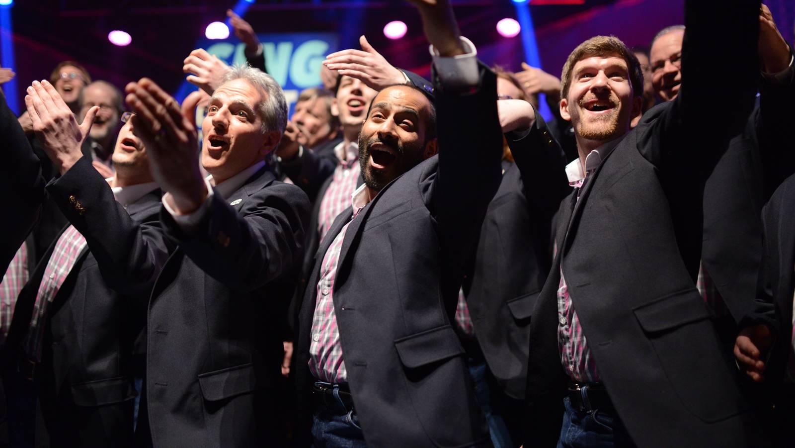 Boston Saengerfest’s Men Chorus, Lexington High School Madrigal Singers, and Colby 8 from Colby College in Maine perform for coaches Annette Philip, Jared Bowen and Anthony Trecek-King. Which of these groups will advance to the grand finale?