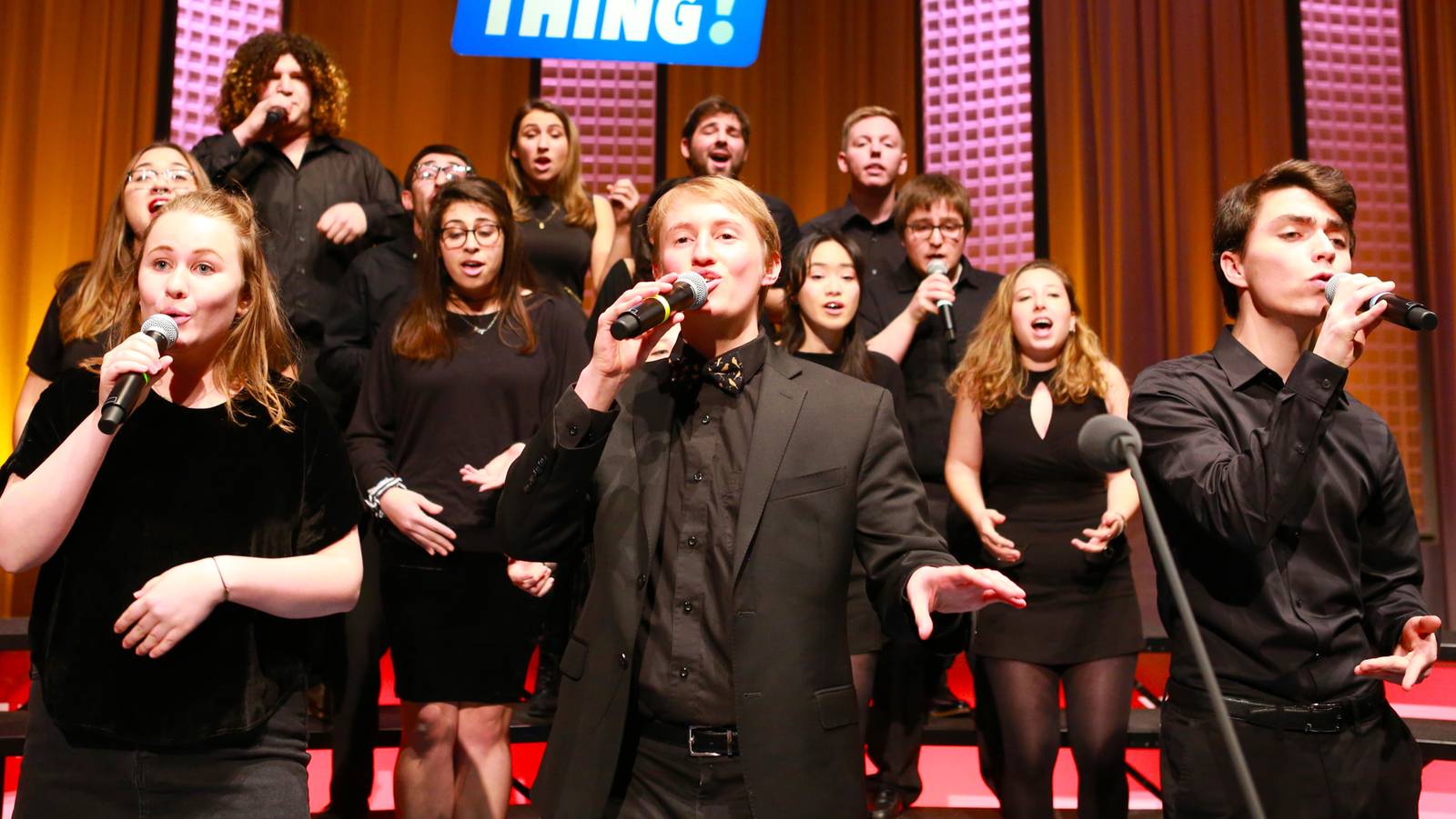 In the season five finale of Sing That Thing!, the top six groups take the stage. Who will win the high school, college, and adult categories? And who will take home the trophy for the overall championship?